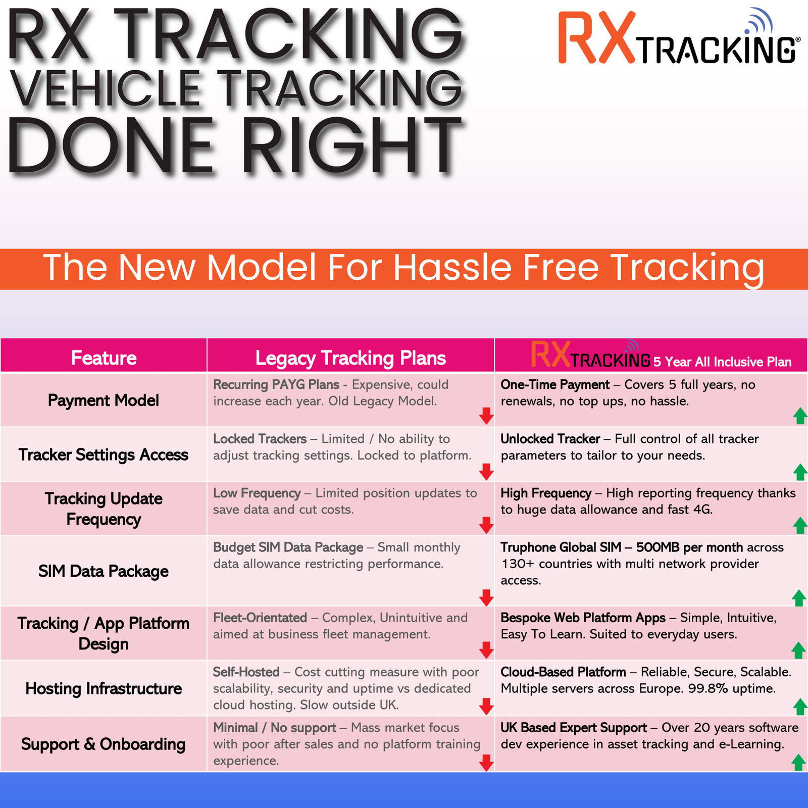 The RX Tracking Essentials package offers unbeatable value by combining high-performance hardware, global connectivity, and long-term platform access into one simple purchase.